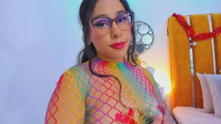 ‘Ik hou van hoe dit regenboog mesh aanvoelt op mijn huid, elke kleur gloeit als ik voor je beweeg. Ik ga met mijn handen door mijn haar, laat het vallen terwijl mijn heupen zachtjes wiegen. Mijn ogen zijn op jou gericht, kijkend, wachtend. Ik voel het ritme opbouwen en ik wil deze energie met je delen. Ik blaas een kusje jouw kant op, een kleine belofte van de pret die we kunnen hebben. Dit is alleen voor ons, hier in onze privéchat.’